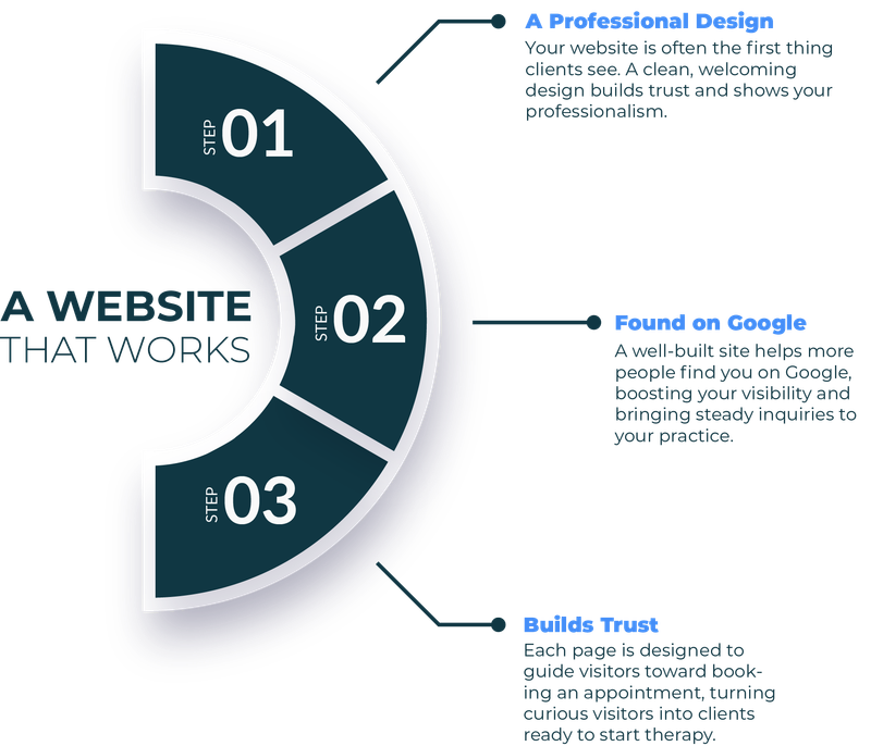 We build websites that work, only for therapists who are serious about growing their practice. Optimized for SEO, optimized for conversion. All you do is fill out the intake form - we take it from there