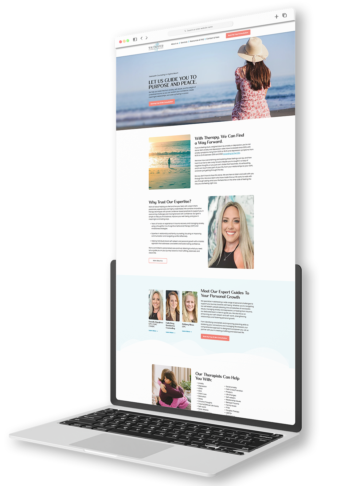 We work only with therapists. That’s it. We’ve seen the burnout, the tech overwhelm, and the frustration of trying to get your practice noticed in a sea of sameness. What we offer is simple: strategy and design that reflects who you are, brings in the right people, and takes a weight off your shoulders. We also offer all the other marketing stuff that you are having trouble with.