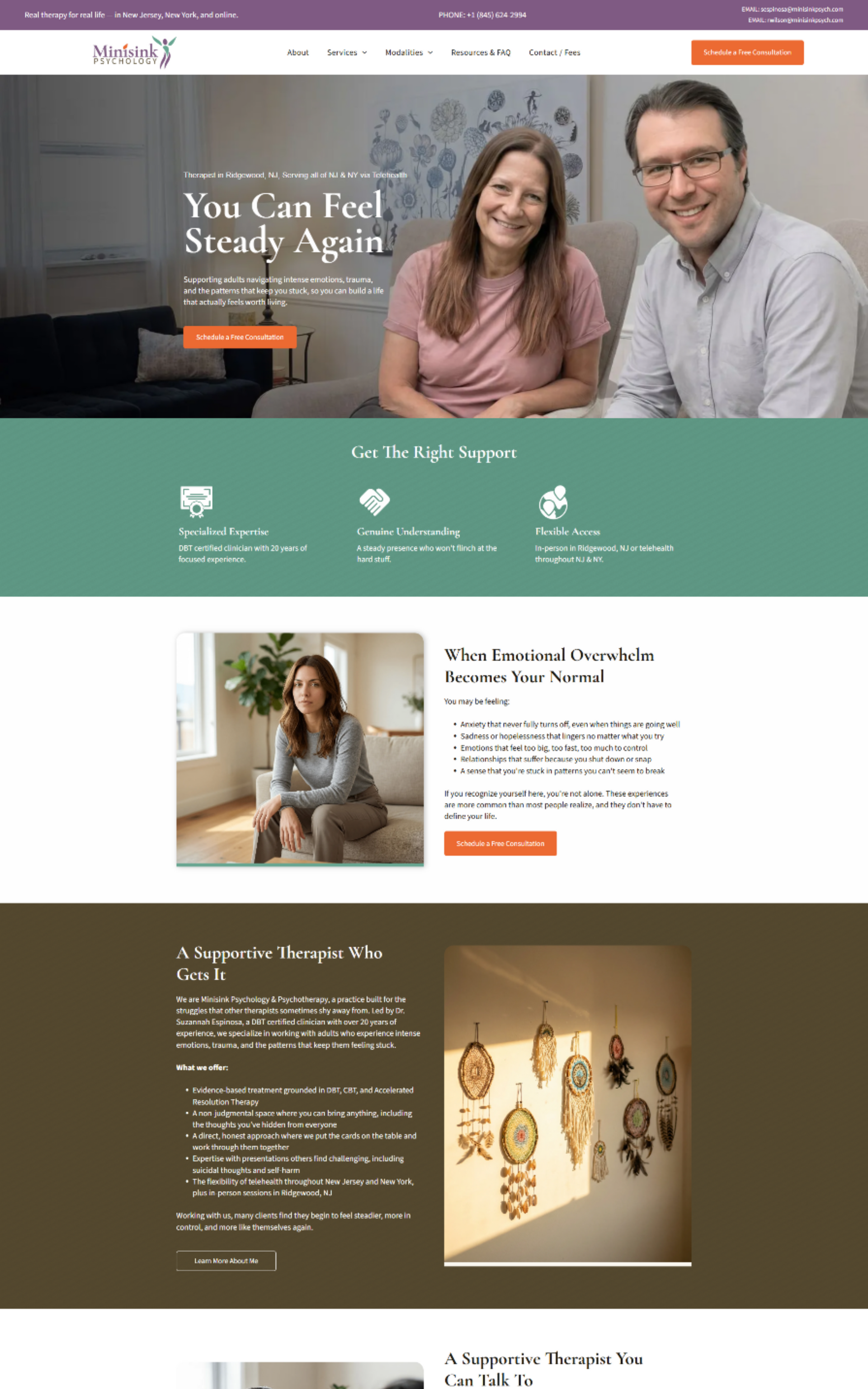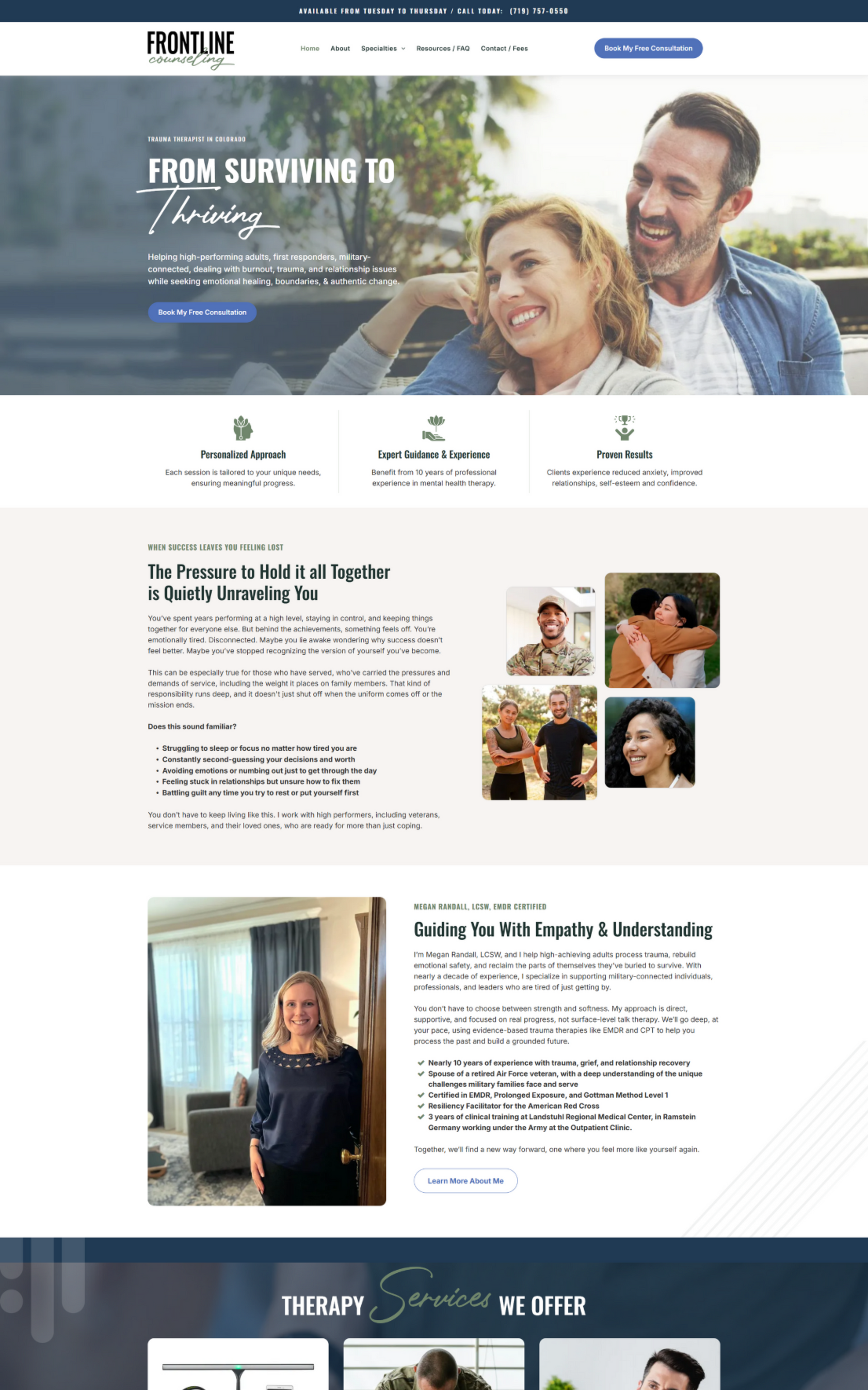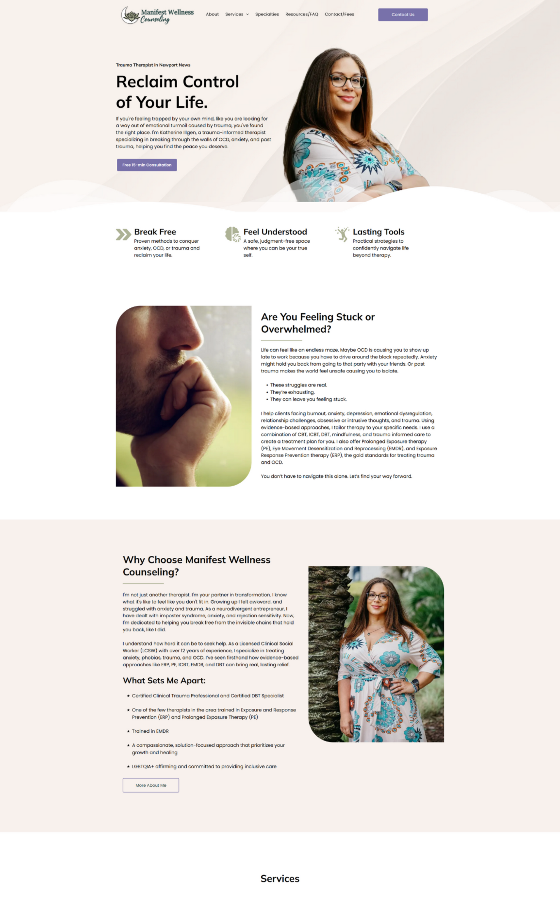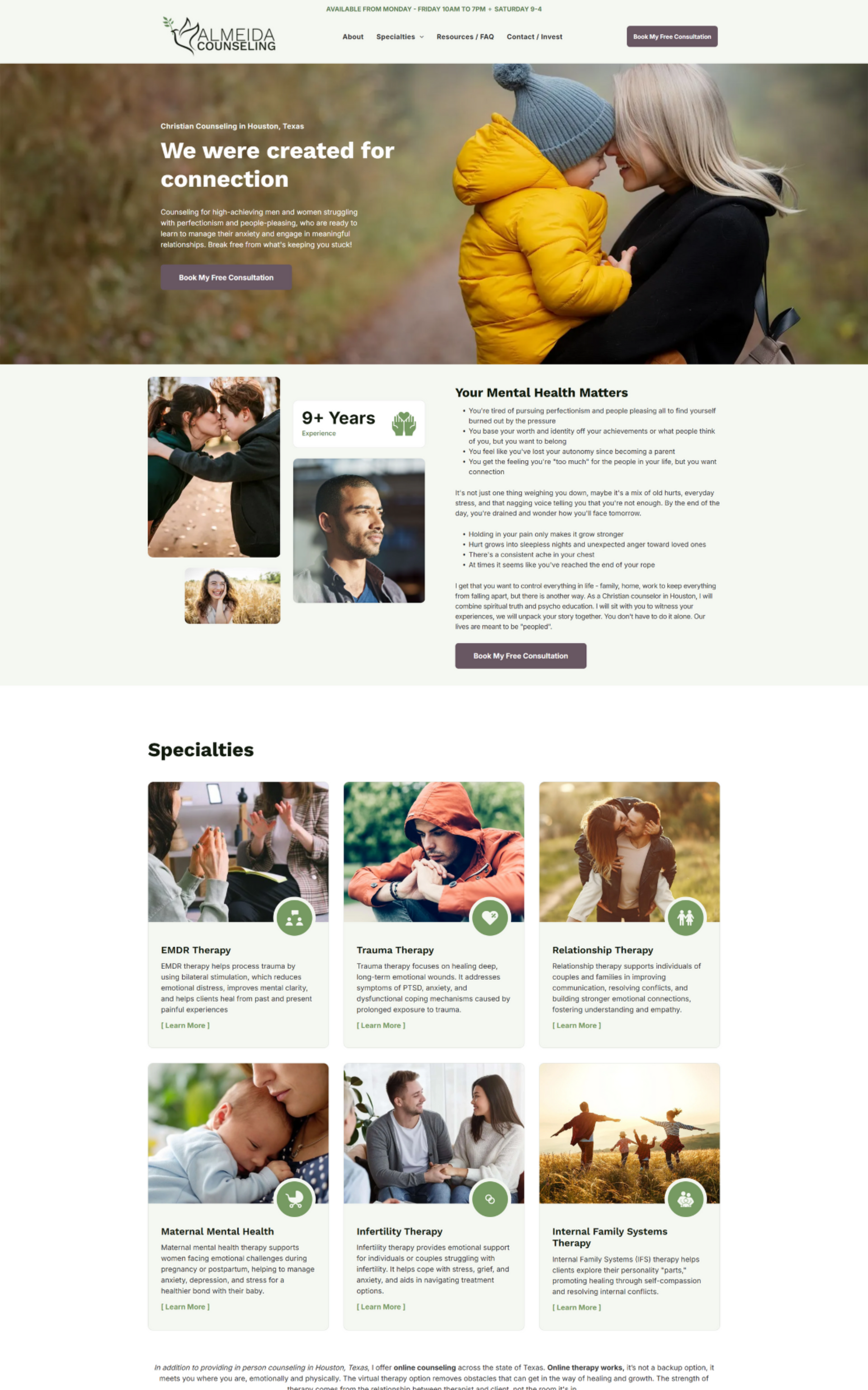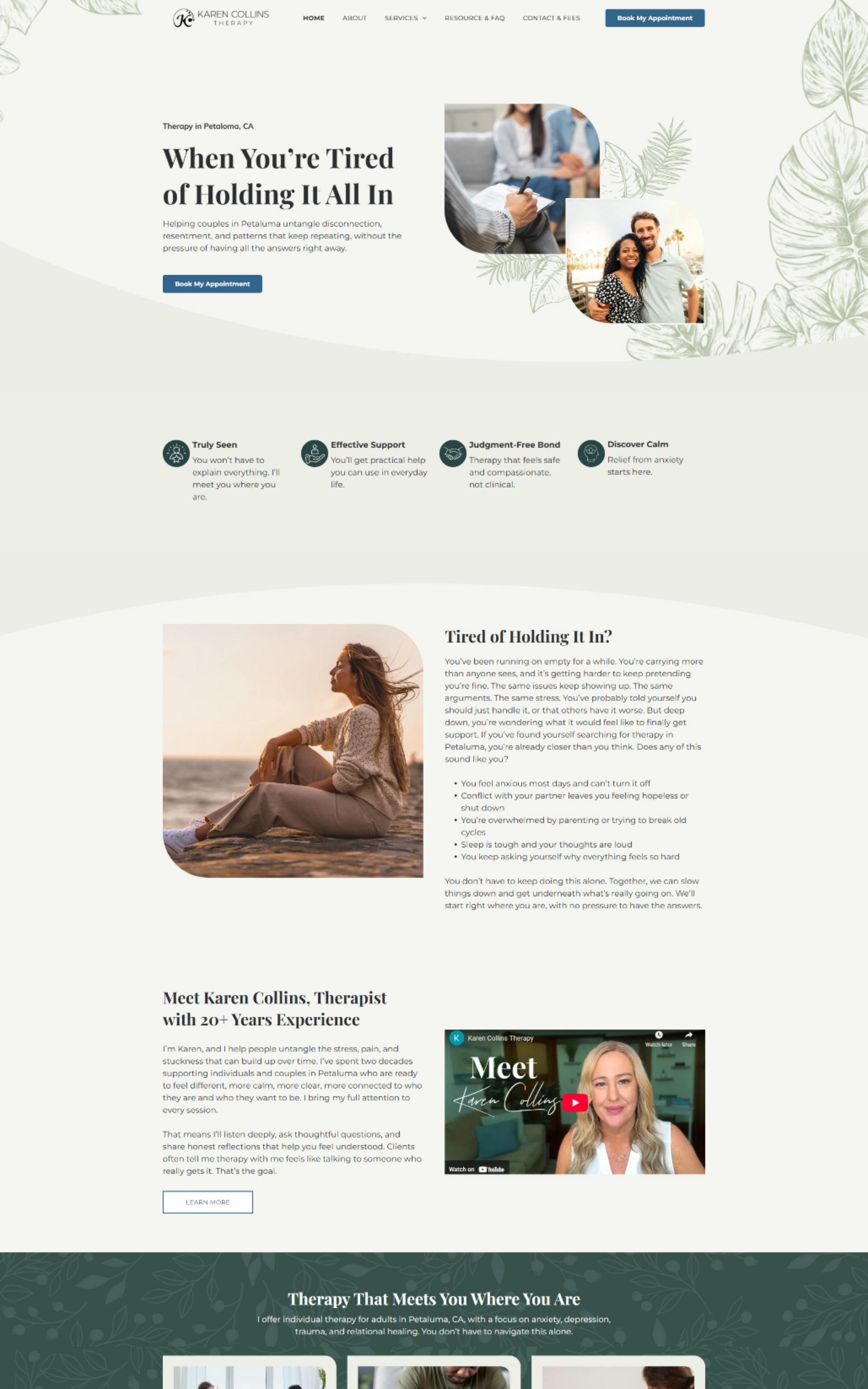 "Jesse helped make my website vision come true and tailored it to meet the exact client niche I was looking to serve. I cannot recommend him enough. His knowledge of website development and SEO helped launch my website right away and it looks so professional. Jesse is a great resource to therapists in private practice."